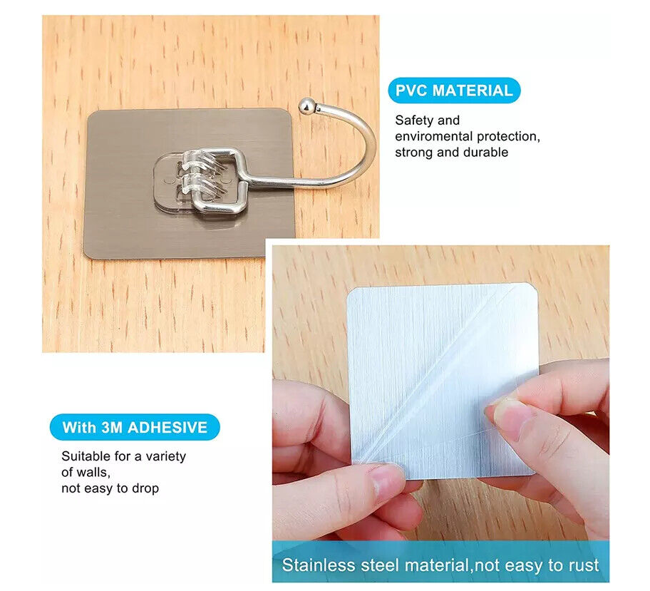 ?Widely Application?: Large adhesive hooks can be widely used on a variety of surfaces, like smooth tile, glass, mirror, wood, metal surface and so on((Painted walls, wallpaper surfaces and rough surfaces not advised).