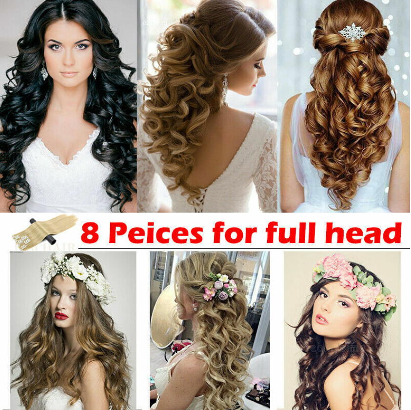 100% Natural Thick Clip in Hair Extensions 8 Pieces Full Head Long As Human Hair