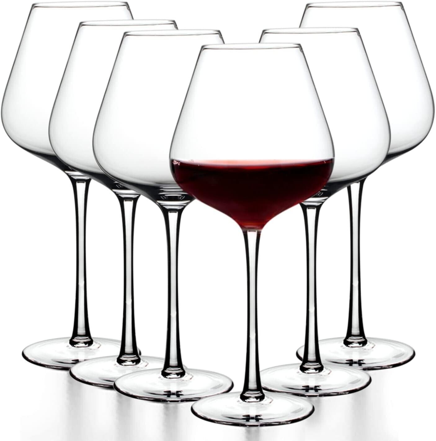 14oz Red Wine Glasses Set of 6,Clear Crystal Burgundy Glasses for Wine Tasting
