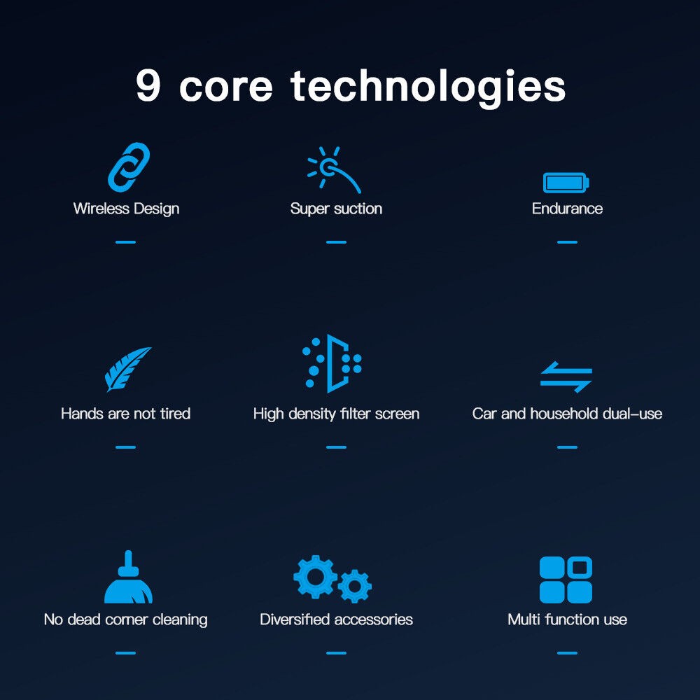 Car Vacuum Cleaner Handheld Cordless Hoover 120W Portable Auto Vacuuming Blowing