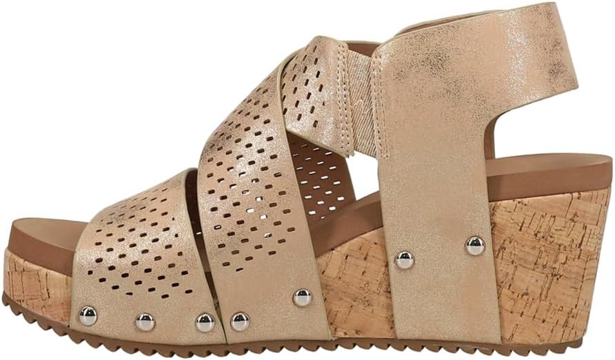 The guilty pleasure wedge sandals are all the rage right now! With this fun and open strap look these are bound to make a statement. And nothing tops the comfort of that famous Corkys foam. The velcro strap makes these so easy to adjust to the comfort and fit of your foot.