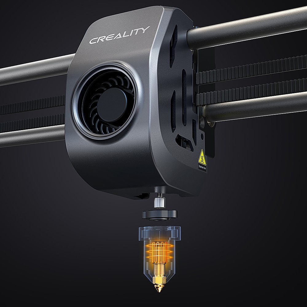 New ceramic heater, encircling the entire hotend. It heats to 200℃ in 40s and melts the filament instantly. Dual-gear direct extruder, delivering strong extrusion force. Hotend with a titanium alloy heatbreak and a hardened steel nozzle, working with flying colors in up to 300℃. Ceramic Heater Encircles the Hotend.