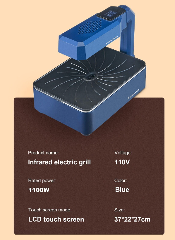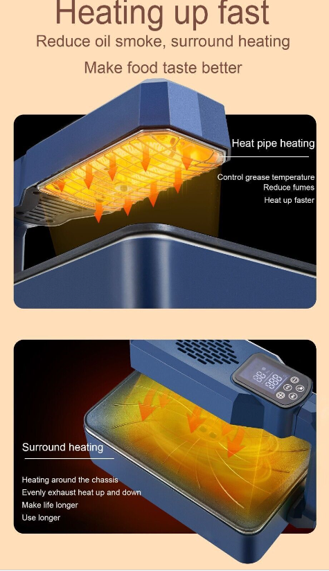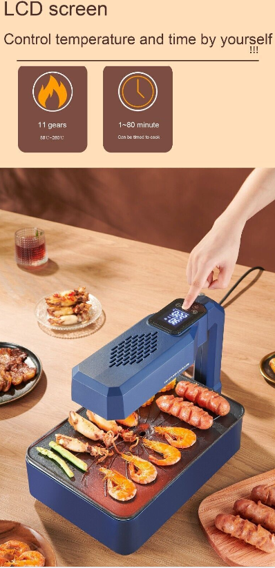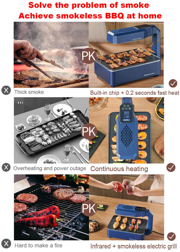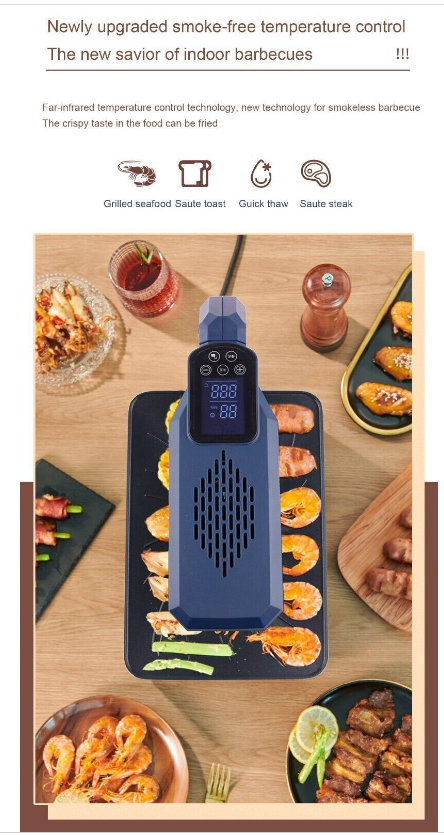 | Feature: 1.Heat pipe heating Control the temperature of grease, reduce oil fume, heat light far infrared heating, and heat up faster. 2.Surround heating The chassis is heated around, and the upper and lower exhausts are evenly exhausted for heat dissipation, which has a long service life and a longer use time. 3.LCD liquid crystal screen Control the temperature by yourself, easily realize the freedom of barbecue, easy to operate, and control the deliciousness by yourself 4.Smokeless BBQ Don't worry about oil fumes, the best choice for family gatherings, colleagues' dinners, one person's food. Specification:Voltage: 110V Rated power: 850W Touch screen mode: LCD touch screen Product color: Blue Product size: 37 x 22 x 27cm = 14.56 x 8.66 x 10.62 inch Package include: 1 x Electric Infrared Grill Note: Due to the different monitor and light effect, the actual color of the item might be slightly different from the color showed on the pictures. Thank you! Please allow 1-2cm measuring deviation due to manual measurement. |
