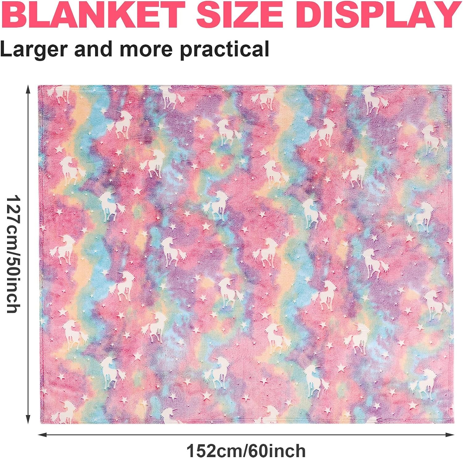 Glow in The Dark Blanket Unicorns Gifts for Girls,Toys for 2 3 4 5 6 7 8 9 10 Year Old Girl Gifts,Soft Kids Blankets for Christmas Halloween Birthday Valentines Gifts,50"x60"