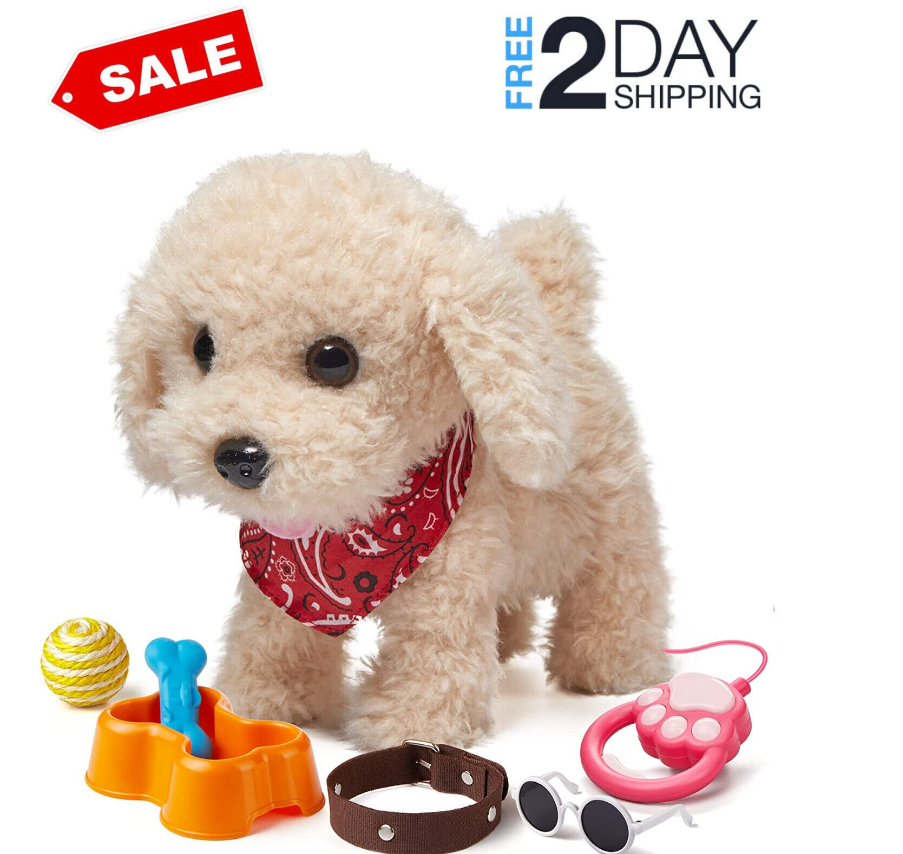 Juguete electrónico de peluche con control remoto, divertidos juguetes interactivos, paseos, ladridos, agitar la cola, vestir a perro de peluche realista, regalo para niñas y niños de 3 a 6 años