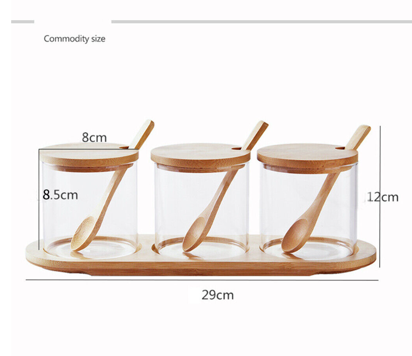 Bamboo wood base, fine texture, convenient and easy to use, the capacity of a single jar is about 400ml.