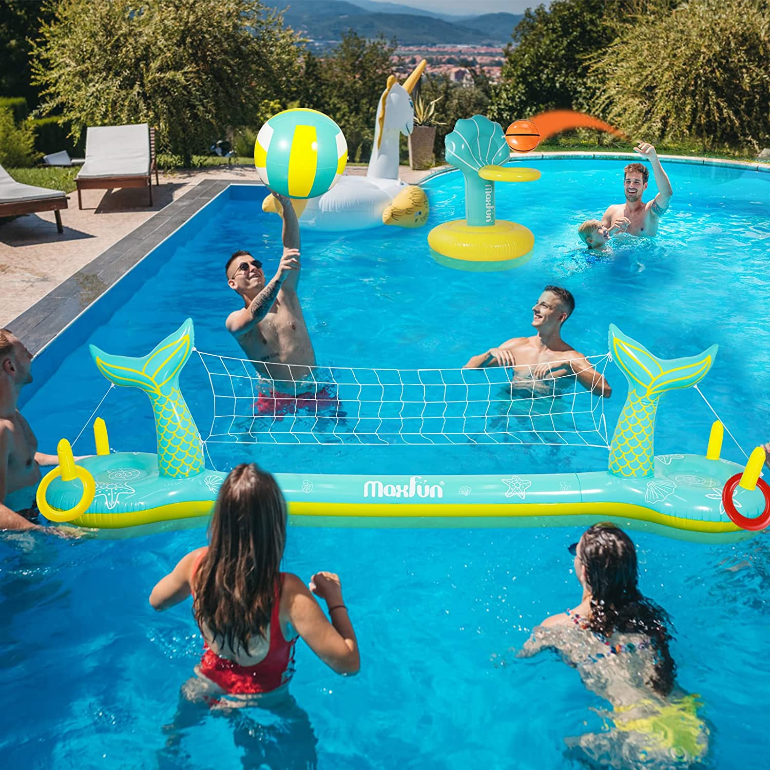 Max Fun Pool Floats Toys Game Set Floating Basketball Hoop Inflatable Ring Toss