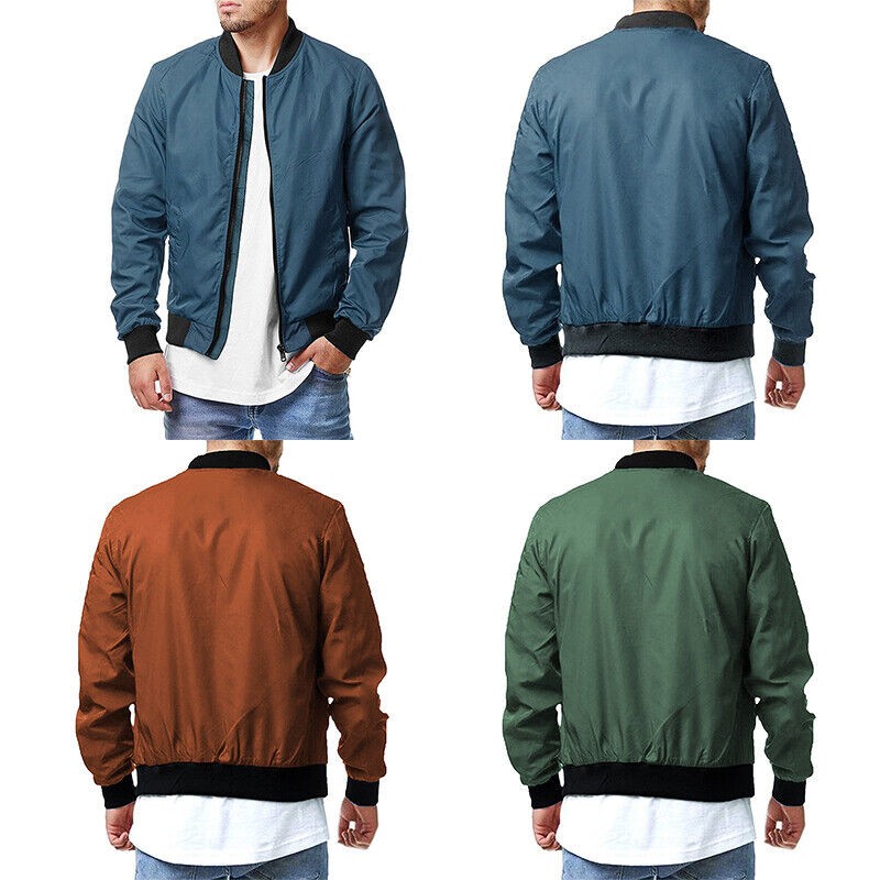 Men's Regular Fit Baseball Jacket Coat Casual Pockets Crew Neck Bomber Outwear/,