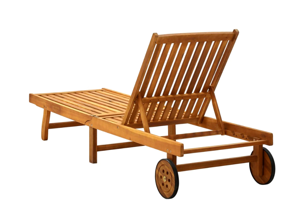 Relax and take a load off in your garden or patio on this comfortable wooden sun lounger! You can spend a relaxing afternoon in your own outdoor space. It is perfect for a pool, balcony, garden, etc. This outdoor sun lounger is made of solid acacia wood, making it sturdy and stable. The backrest and footrest are adjustable, and you can lock the lounger into the desired position. This garden sun lounger can be easily moved around the house with equipped 2 wheels. The sunbed features a convenient pull-out table, to place your phone, sunglasses, drink and other small items. The cushion adds extra comfort for you while lounging. Each cushion features two sets of ropes so that you can fix it on the sun lounger tightly.