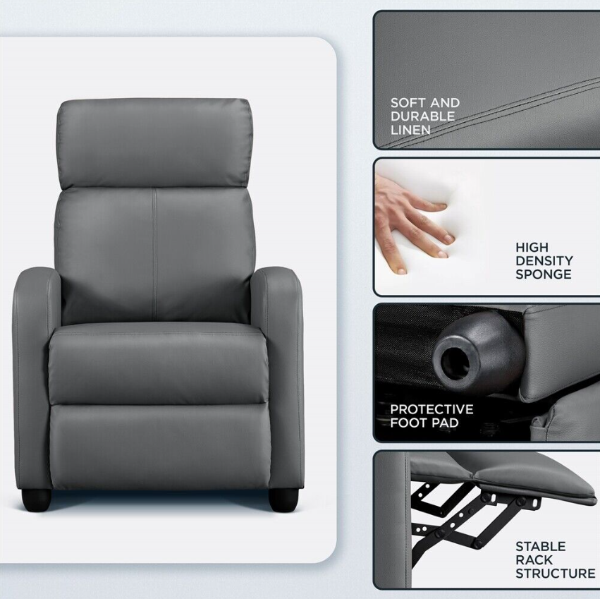 ● Sturdy home-use recliner: This adjustable recliner is constructed of strong composite wood frame. The robust recliner sofa is capable of holding up 120 kg/265 lb.