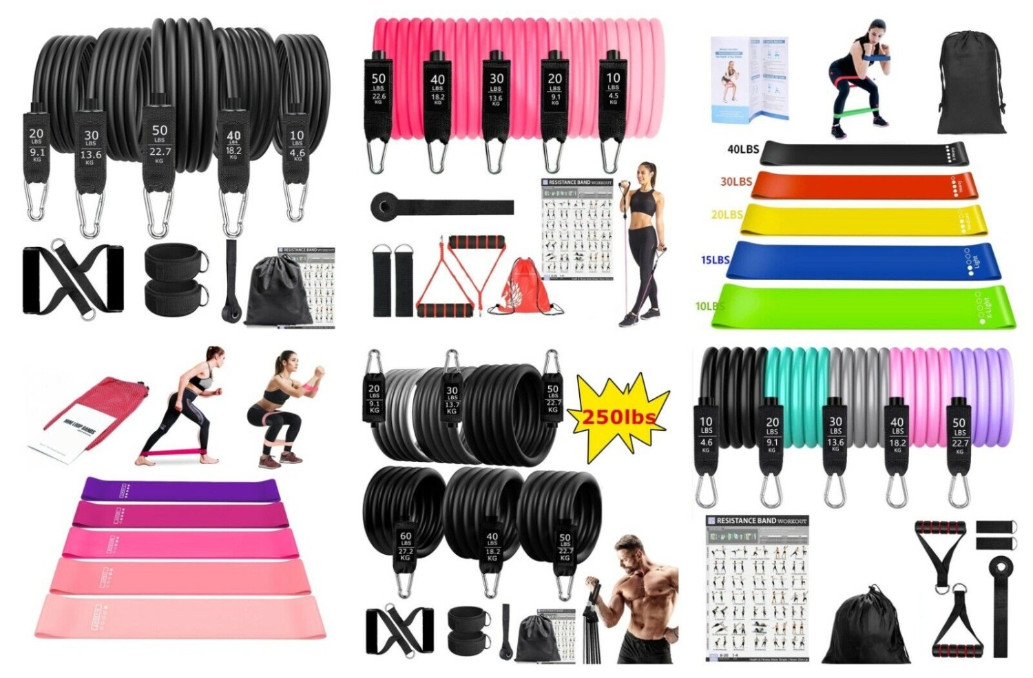 Resistance Bands Set Workout Gym Pull Rope Latex Tube Sports Equipment 250lbs