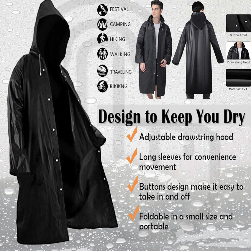 Waterproof with long sleeves and big drawstring hood design keeps you dry in rain.