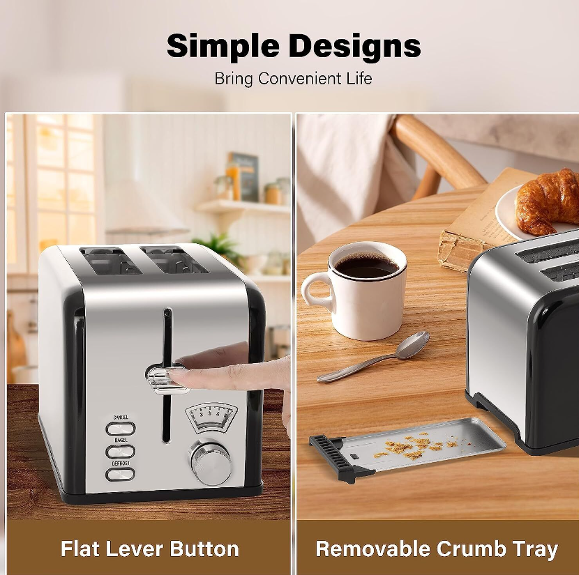 • Bread Lovers: No matter you like English muffins or Texas-style toast or bagels... you can toast them all with this toaster! The wide slots fit any type of bread and help you make your breakfast easily and variously.